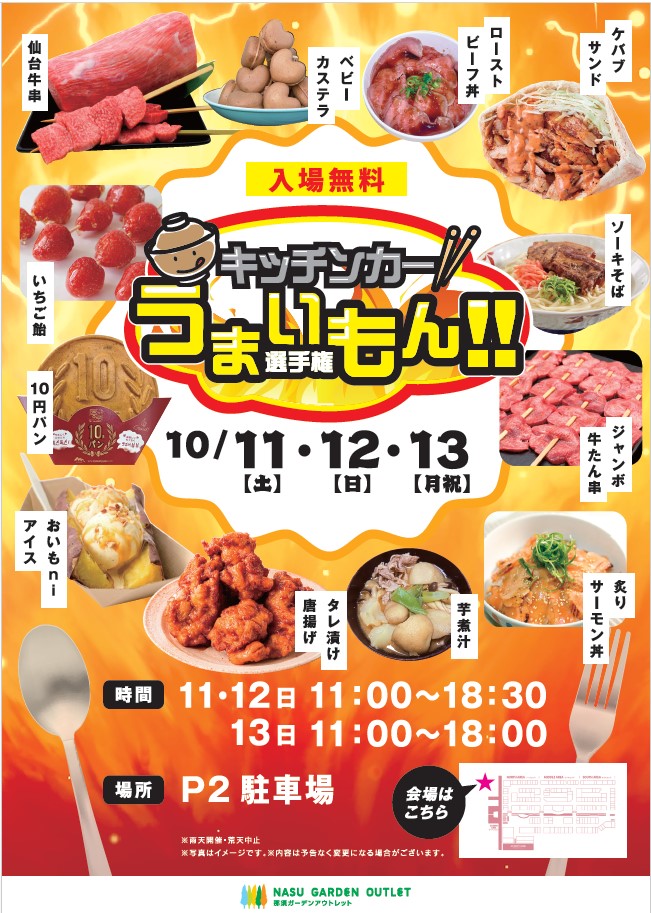 ぜひこの機会に、那須ガーデンアウトレットのキッチンカーうまいもん選手権をお楽しみくださいませ♪