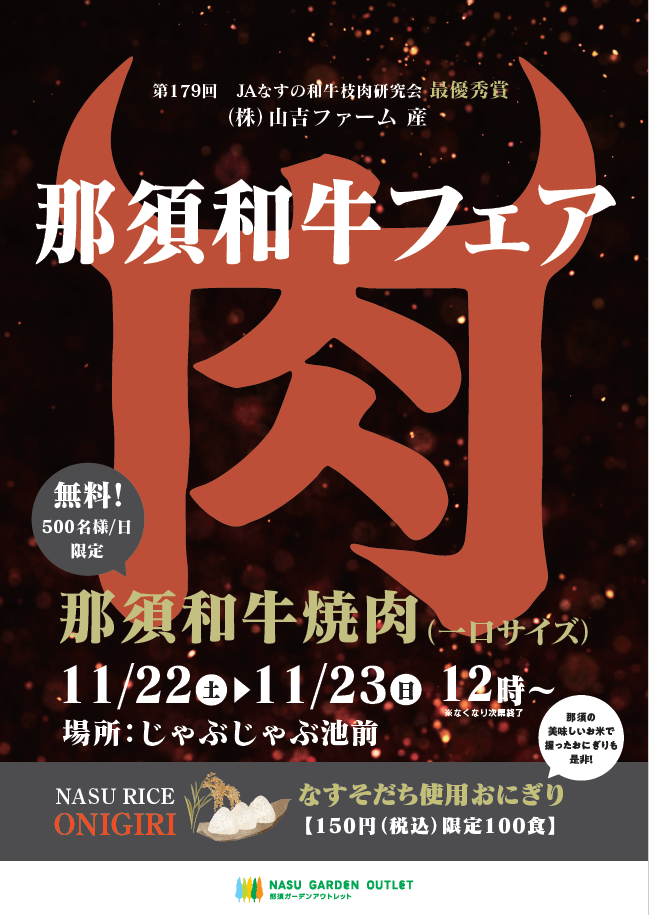 内容:那須和牛焼肉1口サイズ(500名分/日)無料ふるまい