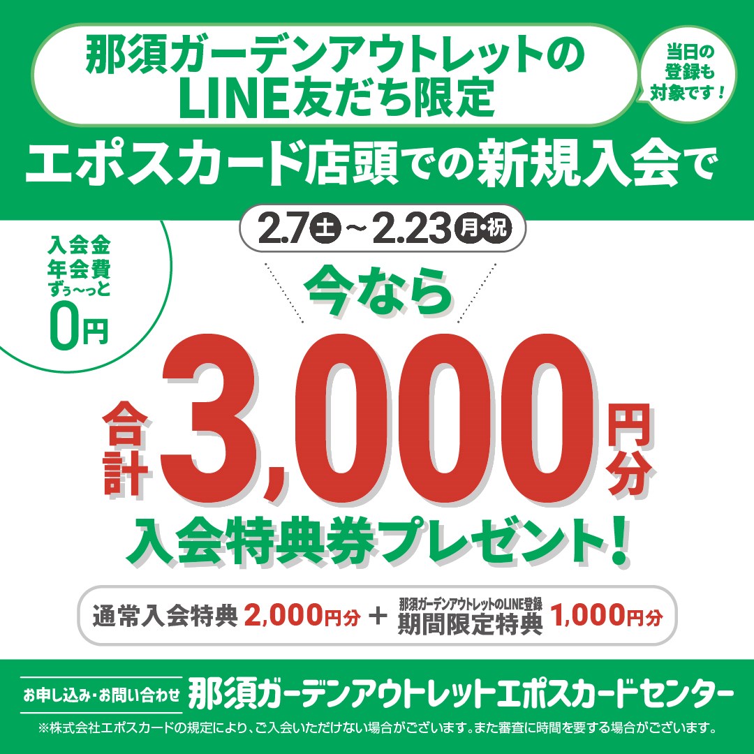 那須ガーデンアウトレットLINE友だち限定 EPOSカード新規入会特典