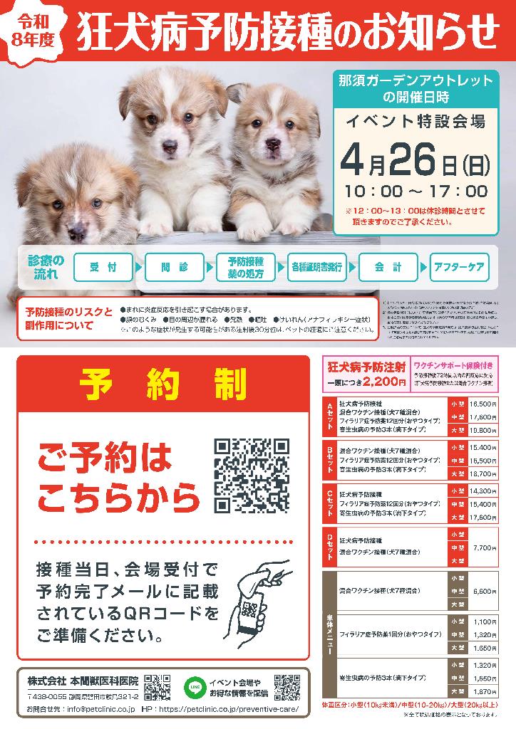 わんちゃんの健康と安心のために!狂犬病予防接種のお知らせ