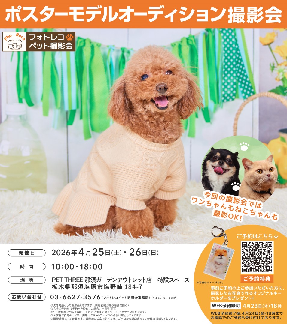 PET THREE那須ガーデンアウトレット店 2026年4月25日(土)~4月26日(日) | フォトレコペット撮影会