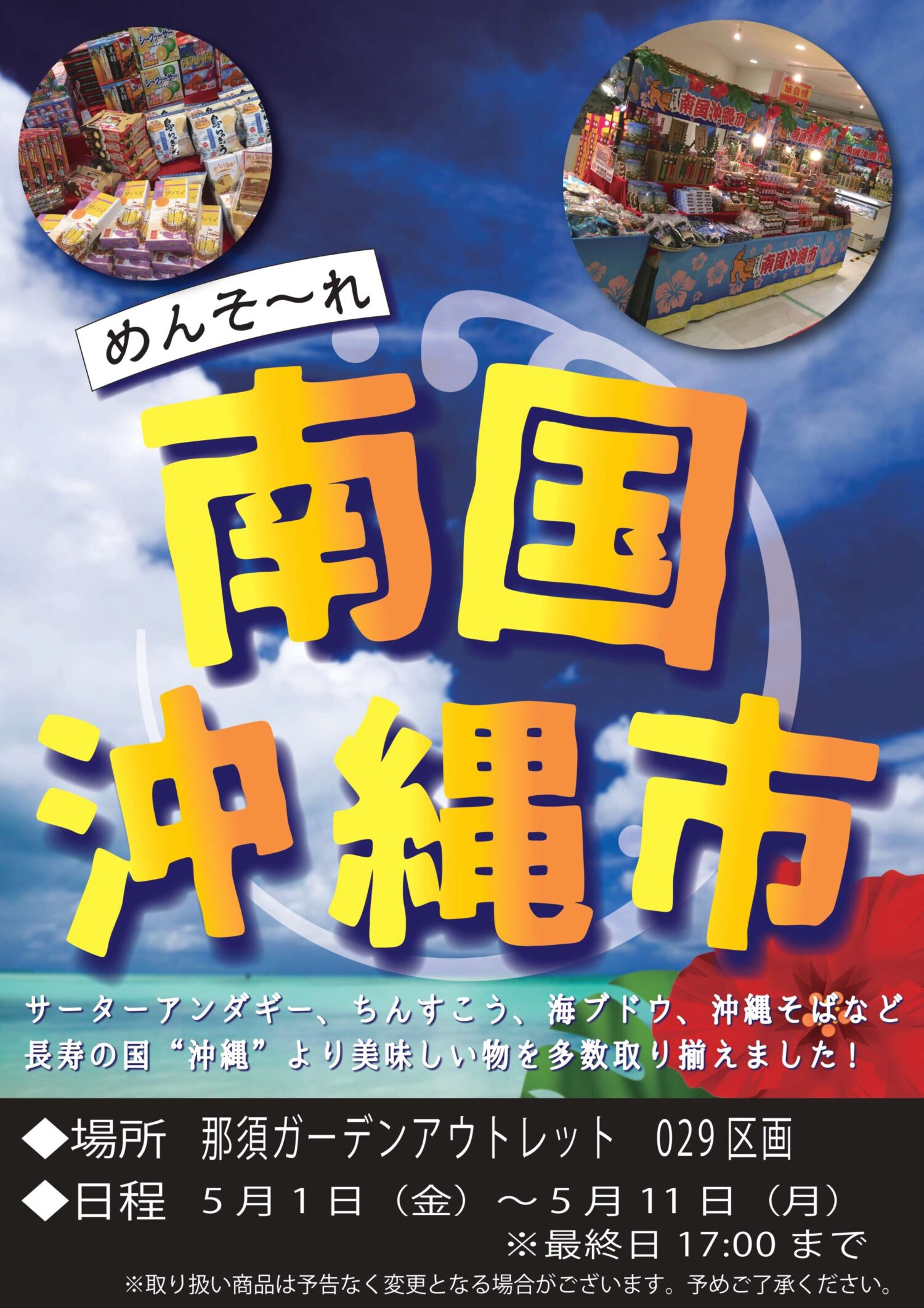 南国沖縄より、サーターアンダギー、海ぶどう、ちんすこう、沖縄そばなど、