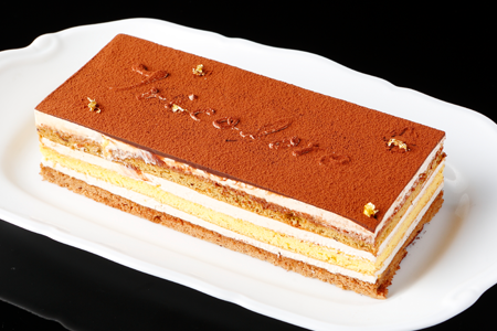 表面にはガナッシュ(チョコレート)を流したラム酒風味のバタークリームの美味しさを教えてくれるケーキです。贈答にも最適です。