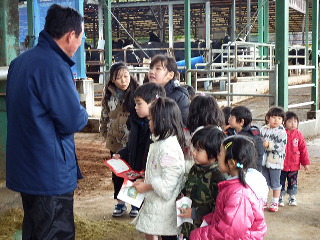 牧場の牛舎や仕事風景を実際に見学しながら、牛の生態や飼育方法についてスタッフの方が丁寧に案内してくれます。