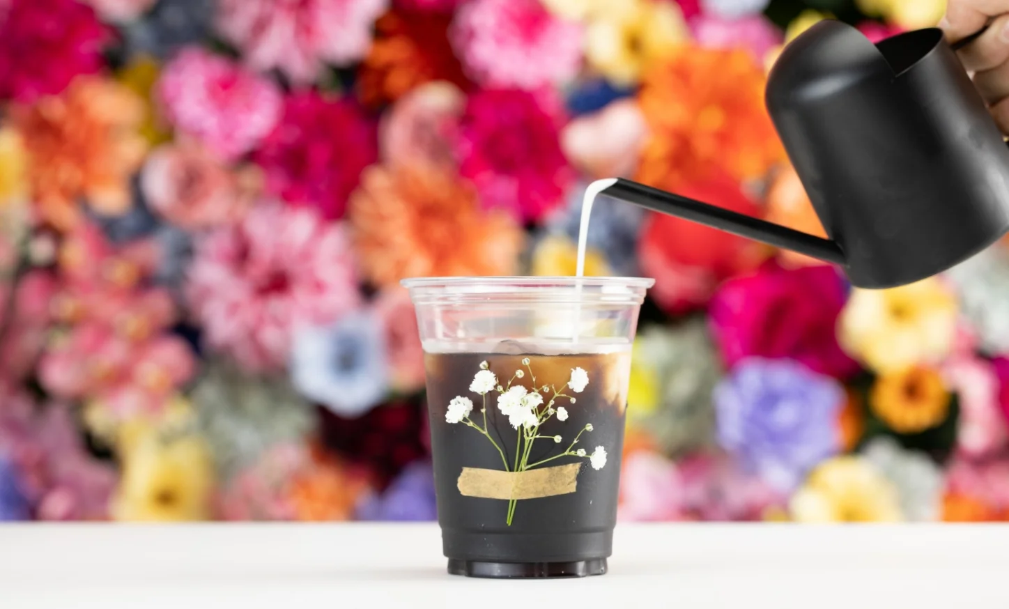 店内に咲き誇る花々と、香り豊かなドリンクやスイーツ。