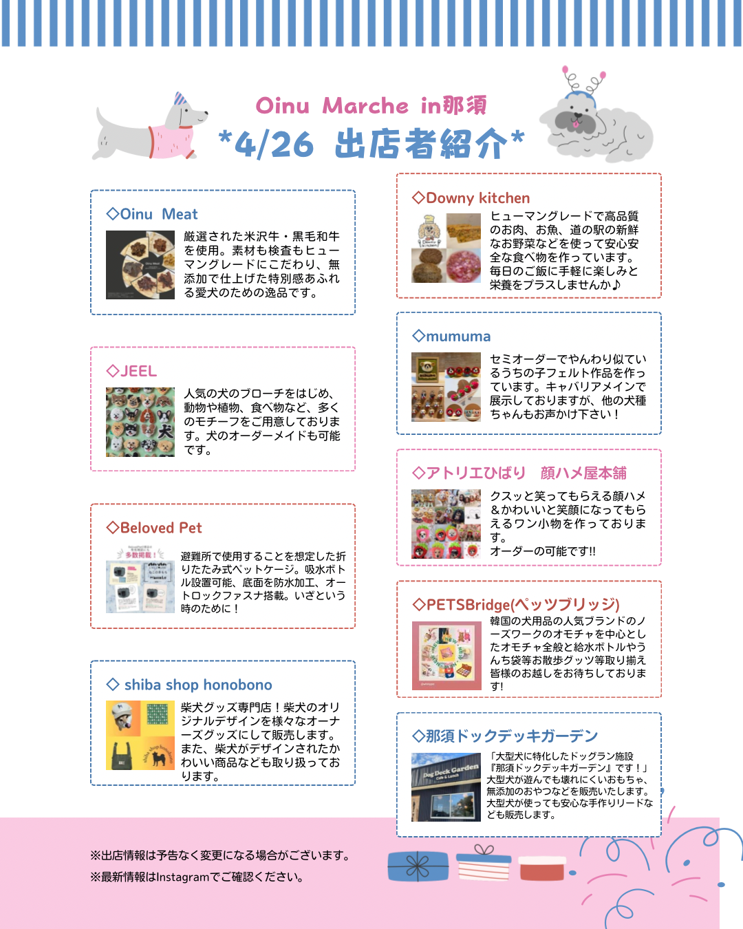 おやつ、洋服、首輪、リード、マッサージ、ワークショップ、イラスト、写真など…わんこのためのショップが大集合🐾
