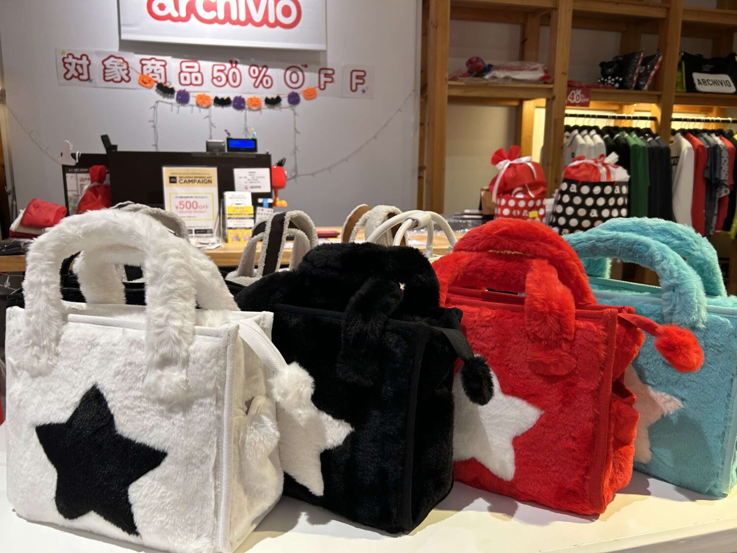 こんにちは😊那須も一気に涼しくなり、過ごしやすくなりました!さて、先日当店にも続々と秋冬アイテムが入荷してまいりました!中でも寒い時期におススメの星柄ファーバッグのご紹介☆まず目を引くのはこの大きな星のマーク🤩全体がファー素材なので、とっても柔らかく触り心地がよく、ついつい撫でてしまうような優しい生地感です🤣✨サイド部分にはarchivioのaのロゴもデザインされていて、なんといってもマチが11㎝と広く、内側が厚めな仕様ですので500㎖のペットボトル2本を横にしても型崩れすることなくすっぽり入ります!高さもあるので、まだまだ余裕がりますよ✨カラーはホワイト、ブラック、レッド、ブルーの4色展開!すべて店頭在庫のみとなっております💦是非お早めにご来店くださいませ!皆様のご来店を心よりお待ちしております!