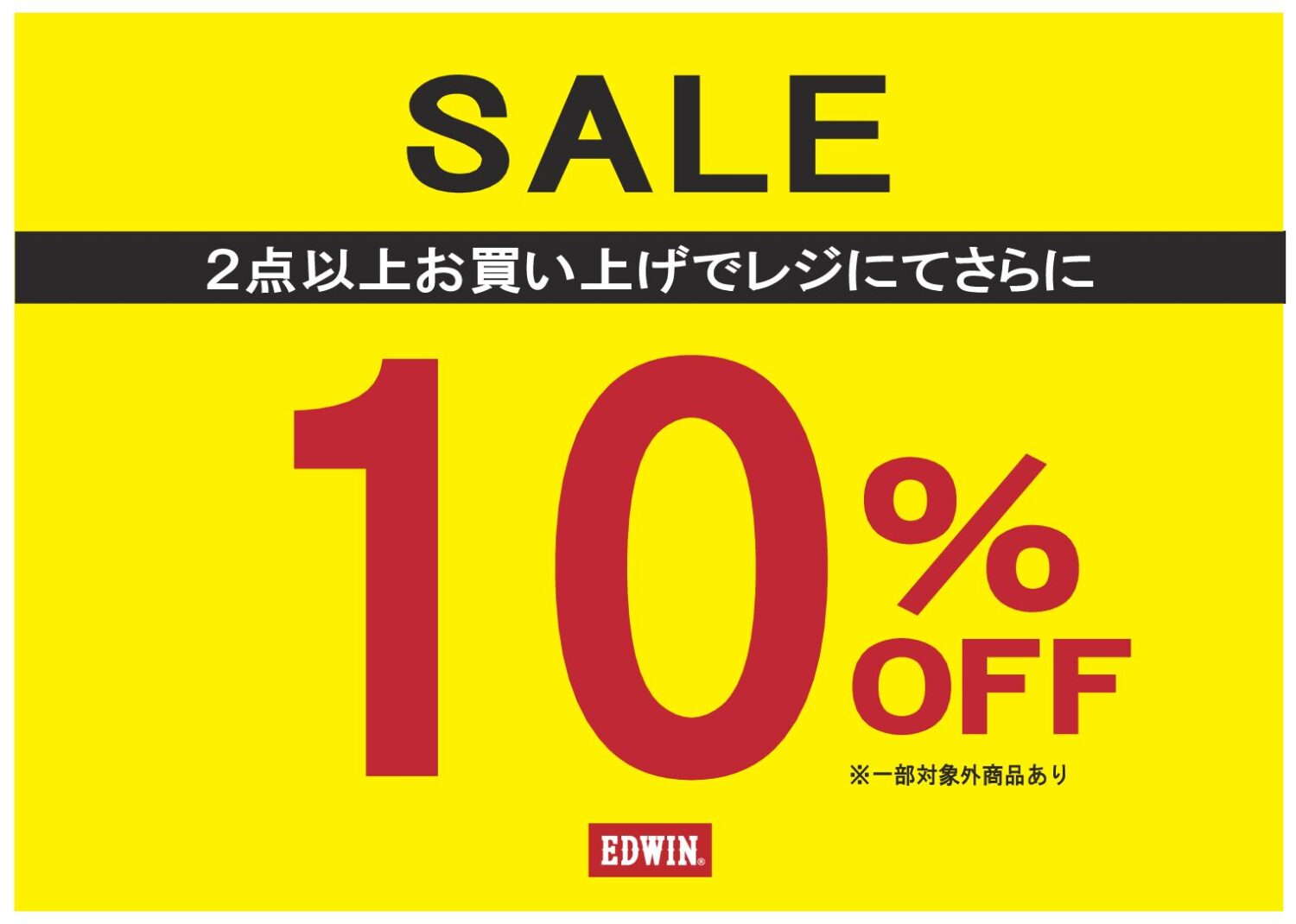 2点以上お買い上げでレジにてさらに10%OFF SALEを開催します。