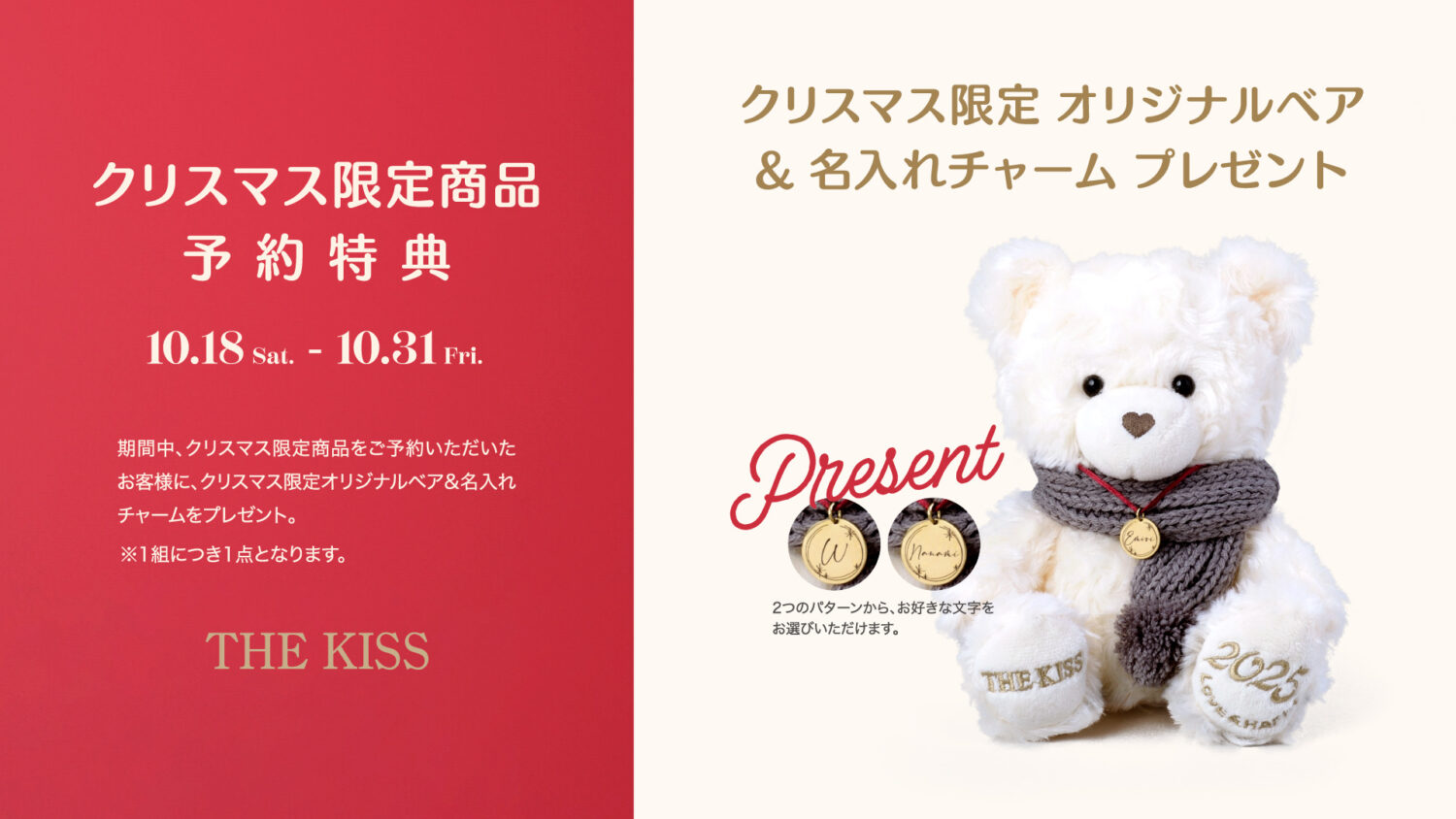 期間中、クリスマス限定商品をご予約いただいたお客様限定で、商品お渡し時に《クリスマス限定オリジナルベア&名入れチャーム》をプレゼント!