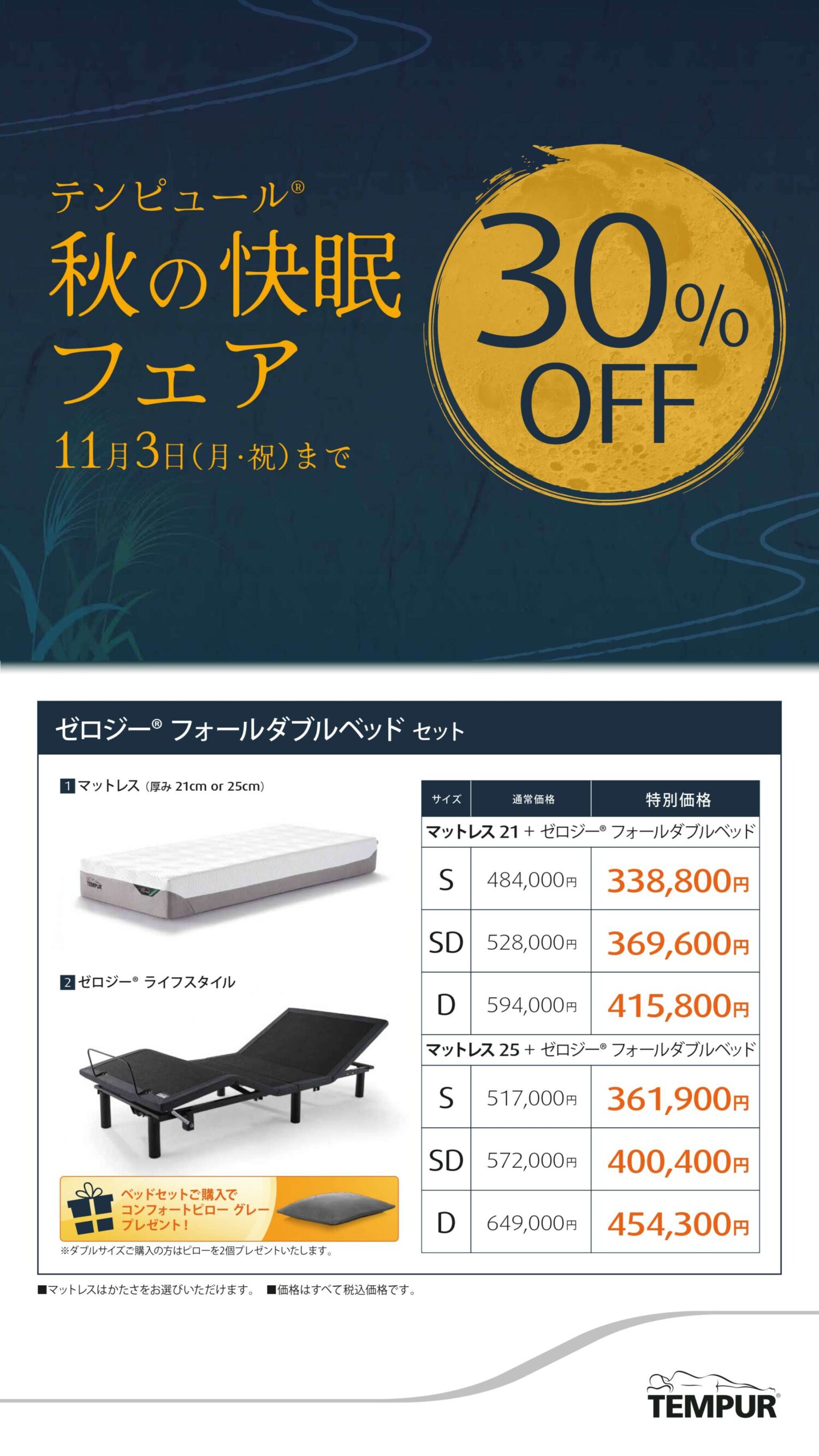 2025.10.28ライフスタイルグッズ&サービスリクライニングベッドセットが30%OFF期間: 2025.10.28〜2025.11.03只今秋の快眠フェアを開催中人気のZeroGセットがお買い得皆様のご来店お待ちしております。テンピュールノースエリア 007ライフスタイルグッズ&サービス / 寝具Tel.0287-65-0807SHOP INFO