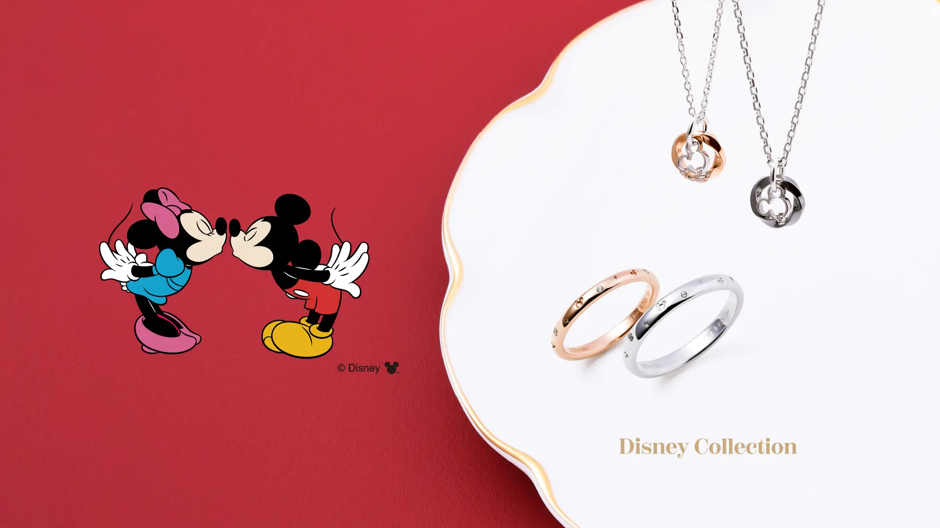 シンプルなフォルムに、ミッキーアイコンやストーンをランダムにあしらった遊び心あるデザイン。