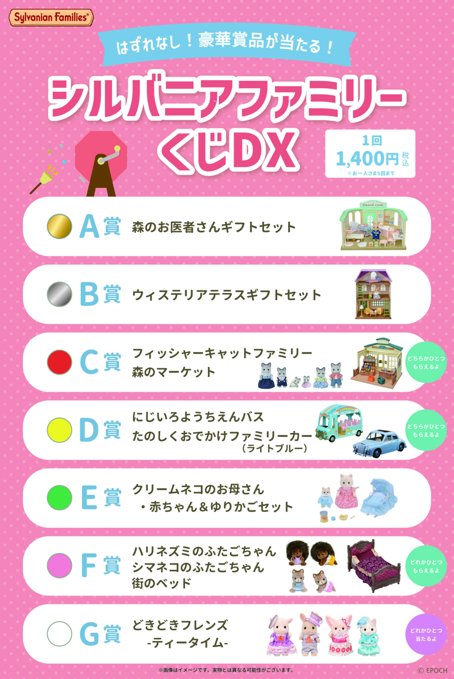 ティーパーティをイメージしたオリジナル衣装がとってもかわいい 「どきどきフレンズ‐ティータイム‐」が賞品の一つとして登場です☆ 全部で4種。どの子が入っているかは開けてからのお楽しみ♪ さらにオンラインショップで発売の「どきどきコレクション‐赤ちゃんティータイム‐」と一緒にそろえて遊べばみんなで華やかなティーパーティに♪ その他にもお家やくるま、海岸版のお人形などが当たるDXくじとなっております。 なくなり次第終了となりますので、ぜひこの機会をお見逃しなく...☆