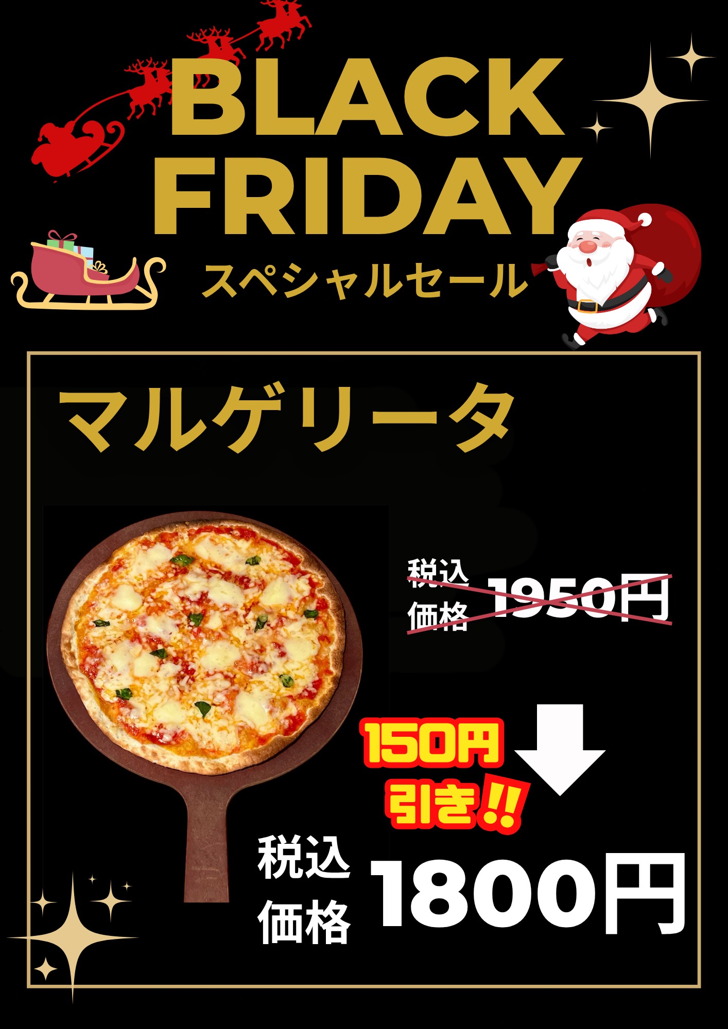 当店の人気商品〈マルゲリータ Lサイズ〉が1950円(税込)→1800円(税込)でご提供いたします!