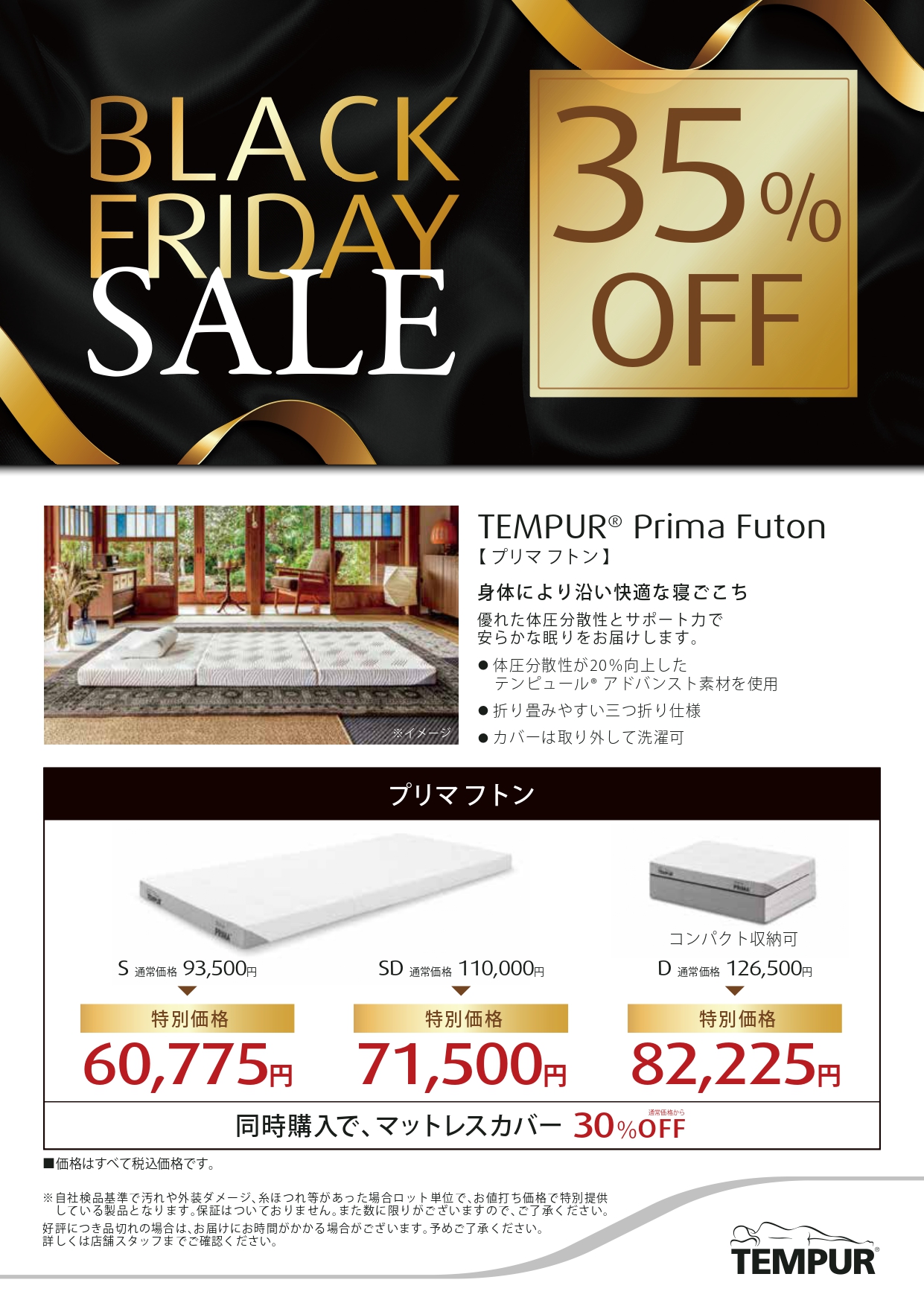 2025.11.19ライフスタイルグッズ&サービスFutonが35%OFF期間: 2025.11.14〜2025.11.30人気のプリマFutonがお買い得です。同時購入でマットレスカバーも30%OFFこの機会にぜひご来店ください。テンピュールノースエリア 007ライフスタイルグッズ&サービス / 寝具Tel.0287-65-0807SHOP INFO