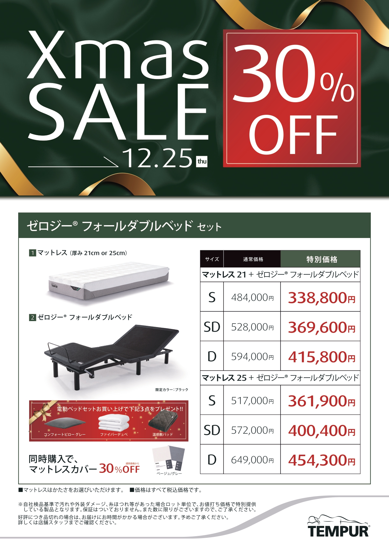2025.12.02ライフスタイルグッズ&サービスリクライニングベッドセットが30%OFF期間: 〜2025.12.25電動ベットセットお買上げでコンフォートピローグレー、ファイバーデュベ、温感敷パッドをプレゼント。大変お得なこの機会にご来店お待ちしております。テンピュールノースエリア 007ライフスタイルグッズ&サービス / 寝具Tel.0287-65-0807SHOP INFO