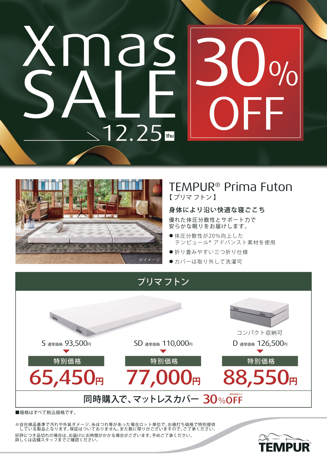 2025.12.04ライフスタイルグッズ&サービスFutonが30%OFF期間: 〜2025.12.25人気のプリマFutonがお買い得です。同時購入でマットレスカバーも30%OFFこの機会にぜひご来店ください。テンピュールノースエリア 007ライフスタイルグッズ&サービス / 寝具Tel.0287-65-0807SHOP INFO