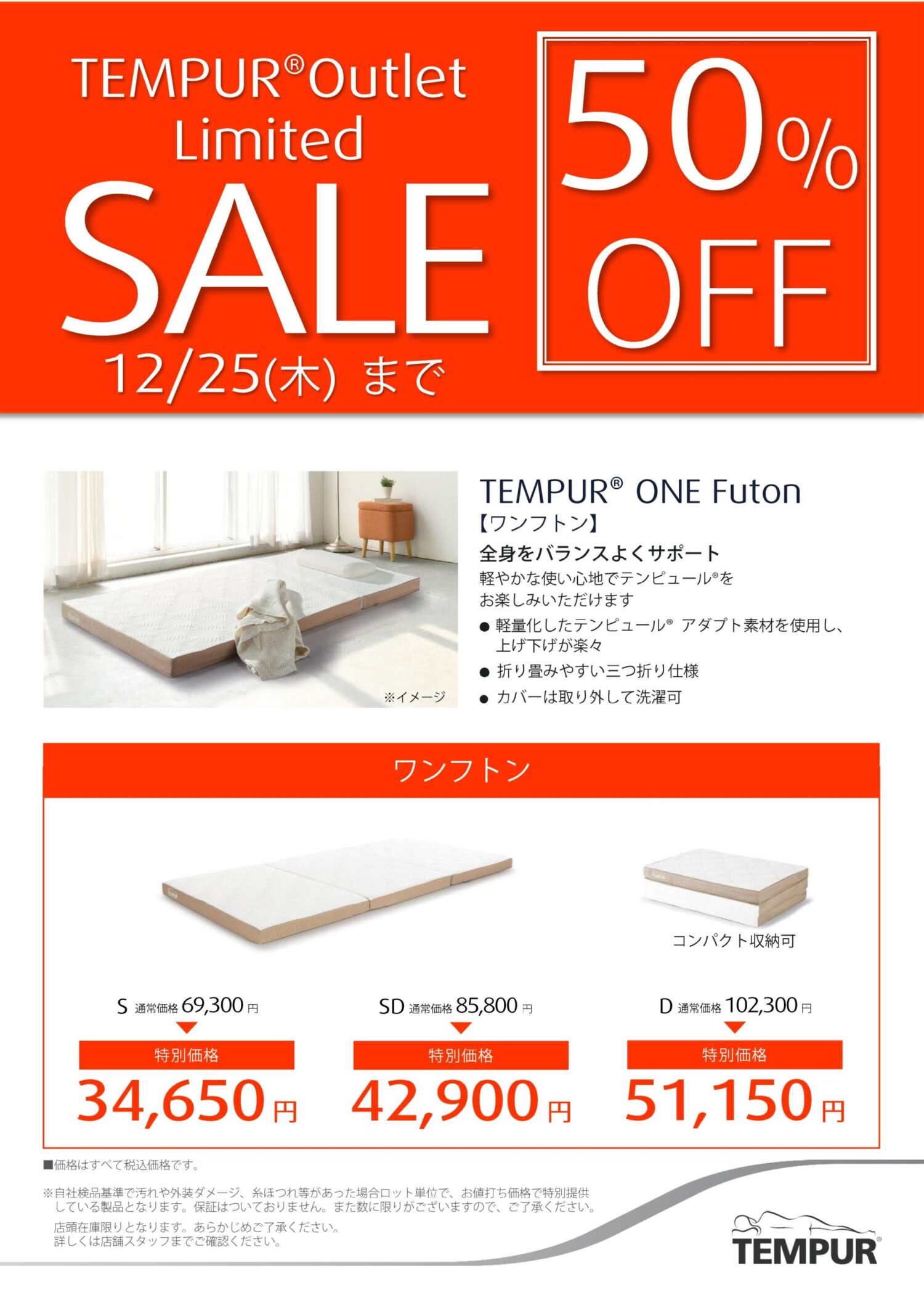 2025.12.18ライフスタイルグッズ&サービスワンフトン 特別価格期間: 2025.12.18〜2025.12.25人気のワンフトンが期間限定で50%OFFこの機会にぜひご来店ください。テンピュールノースエリア 007ライフスタイルグッズ&サービス / 寝具Tel.0287-65-0807SHOP INFO