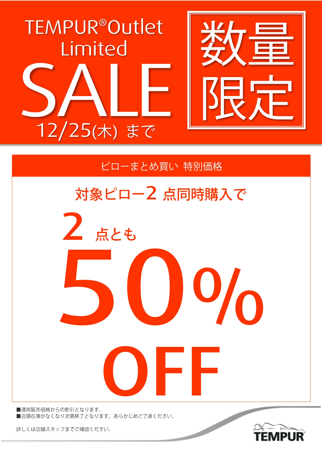 2025.12.19ライフスタイルグッズ&サービスピローまとめ買い特別価格期間: 〜2025.12.25対象ピロー2点同時ご購入で2点とも50%OFFこの機会にぜひご来店ください。テンピュールノースエリア 007ライフスタイルグッズ&サービス / 寝具Tel.0287-65-0807SHOP INFO