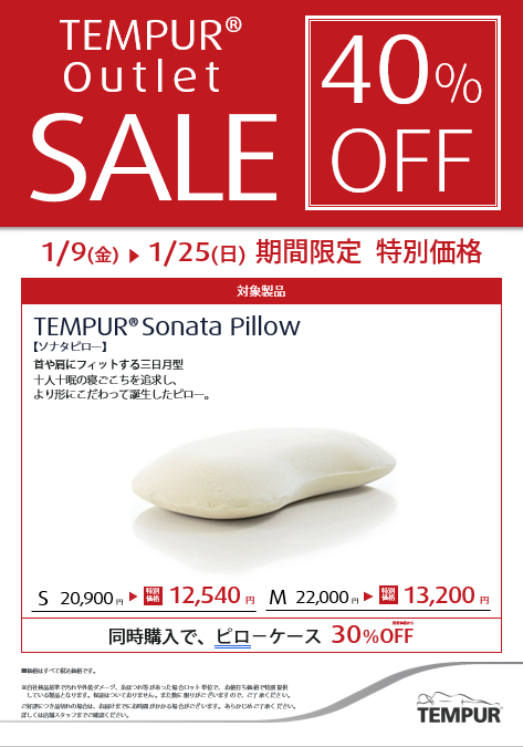 2026.01.11ライフスタイルグッズ&サービスソナタピローが40%OFF期間: 2026.01.09〜2026.01.25横向きで寝る方にお勧めです。大変お得なこの機会にぜひご来店ください。テンピュールノースエリア 007ライフスタイルグッズ&サービス / 寝具Tel.0287-65-0807SHOP INFO