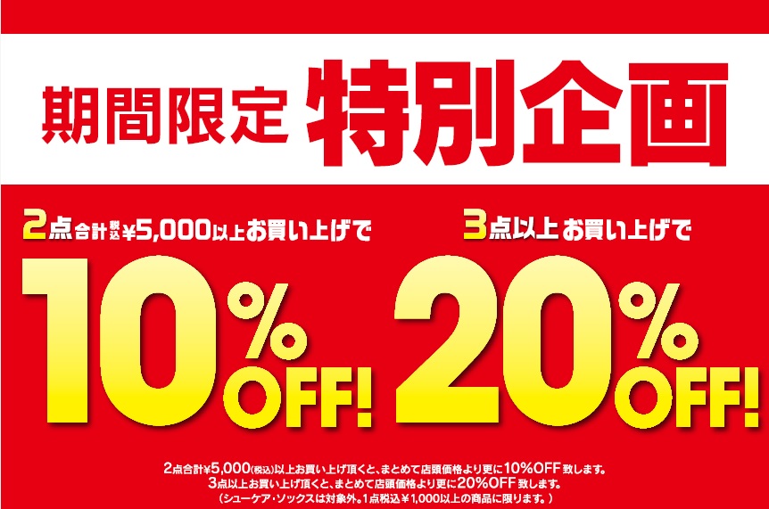 内容 2点合計5000円以上お買い上げで10%OFF!3点以上お買い上げで20%OFF!