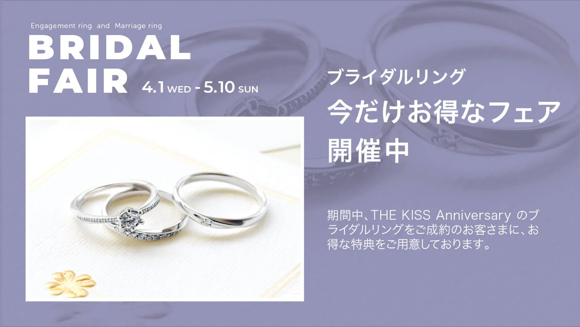 Anniversaryのブライダルリングをご成約のお客さまに、お得な特典をご用意しております。