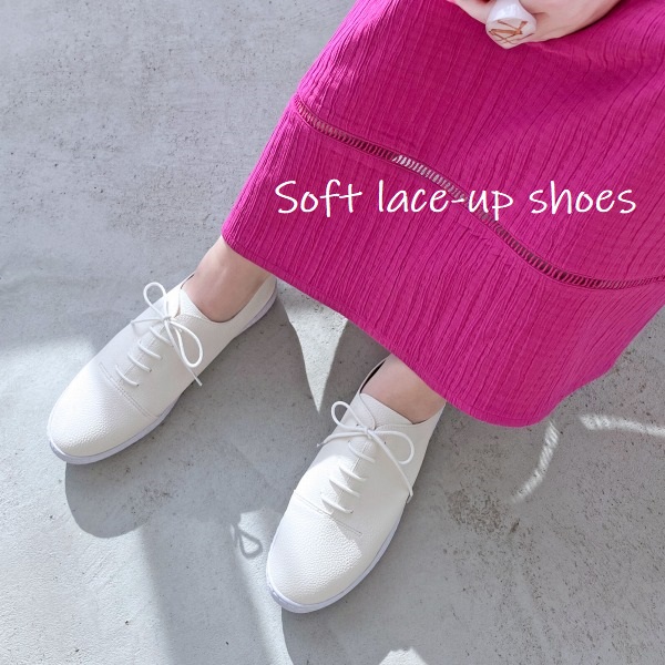 やわらかな素材感で足なじみがよく、軽やかな履き心地もポイント。